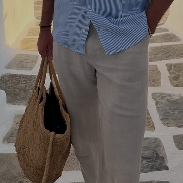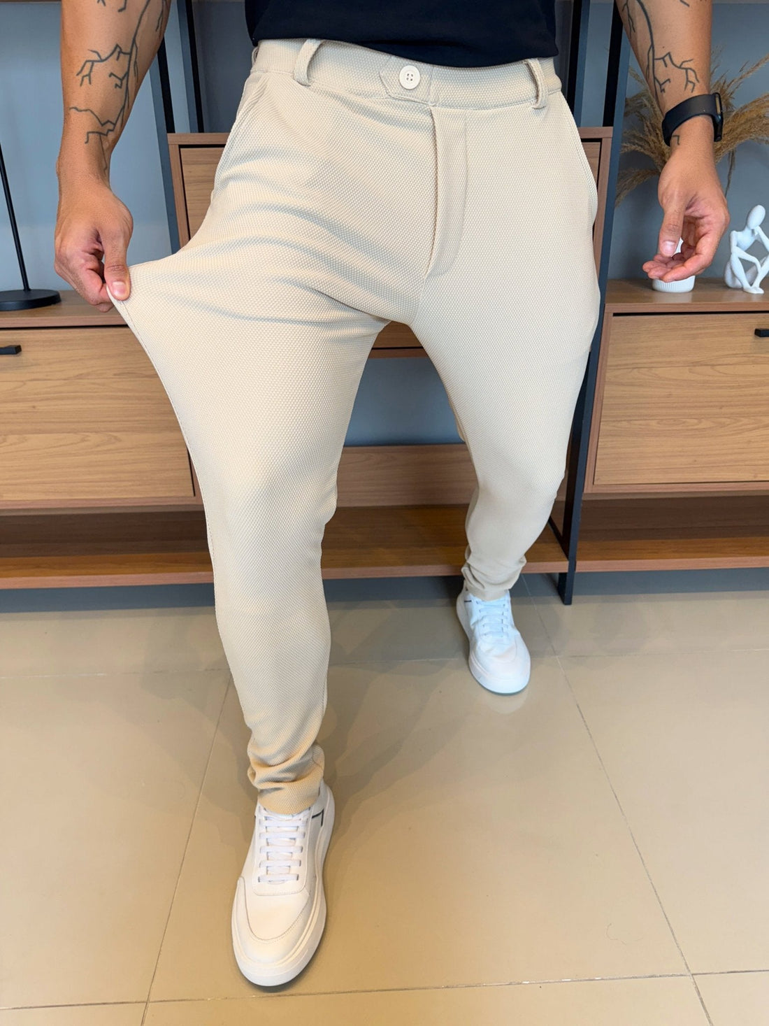 Granitto Textured Trousers – Sand | Zip-Free Design