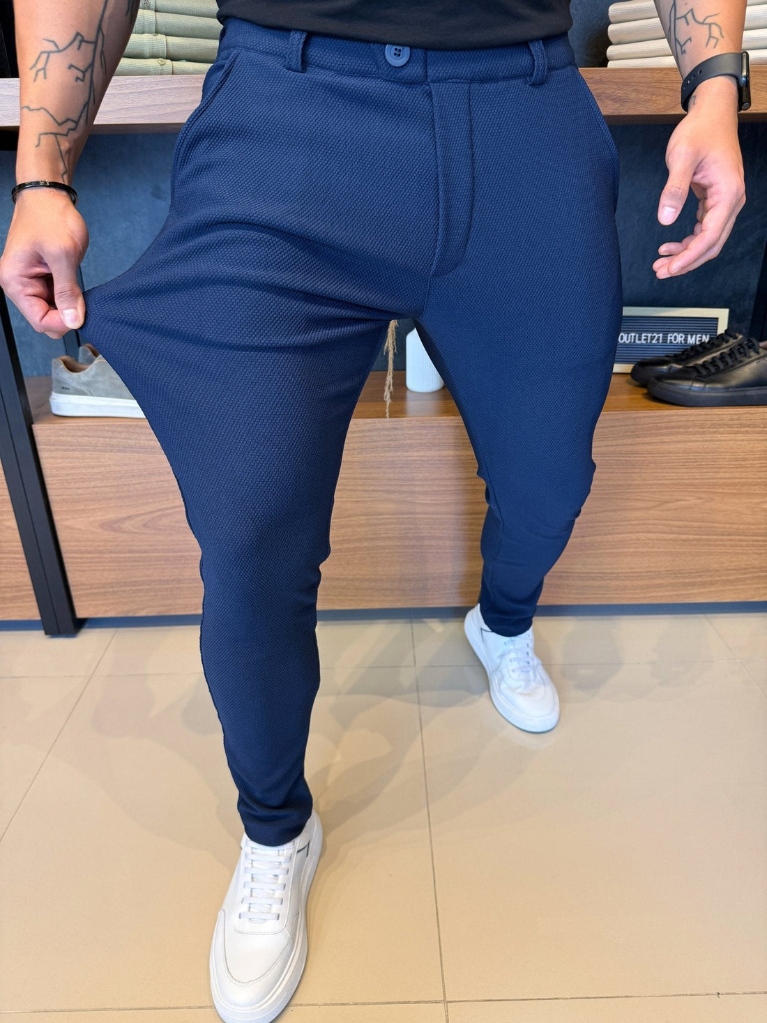 Granitto Textured Trousers – Navy | Zip-Free Design