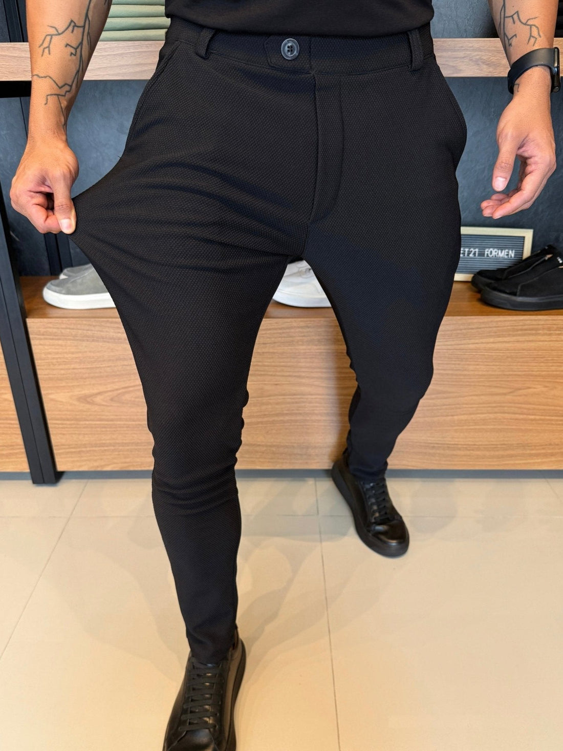 Granitto Textured Trousers – Black | Zip-Free Design