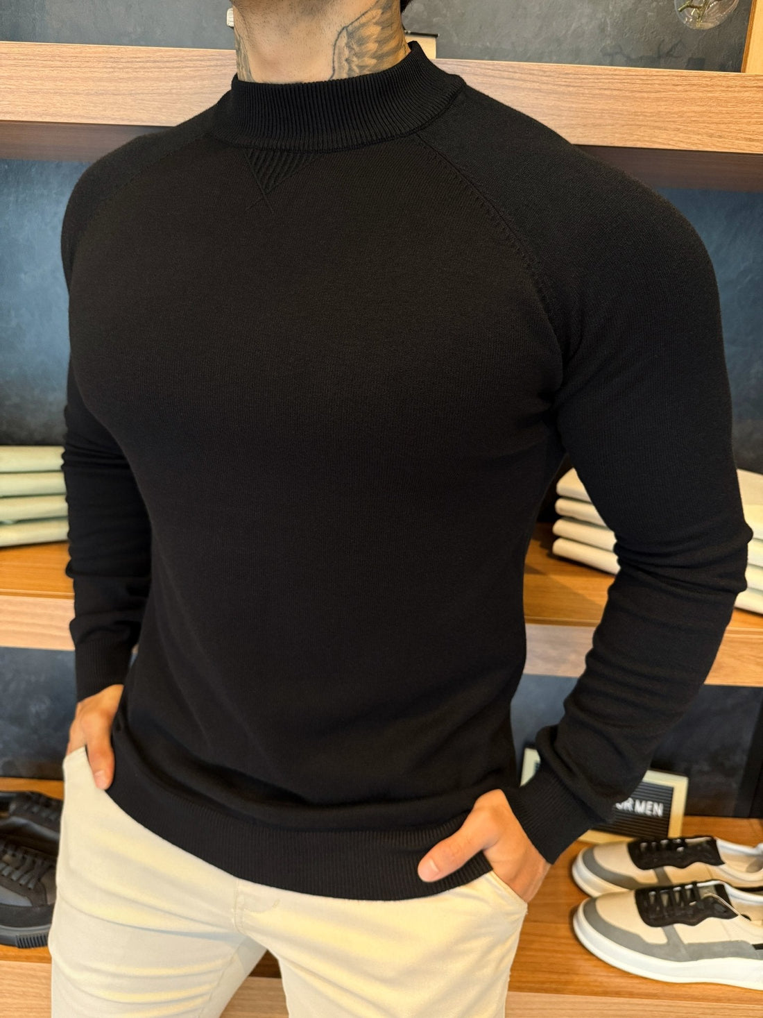 Classic Knit Mid-Neck Jumper – Black